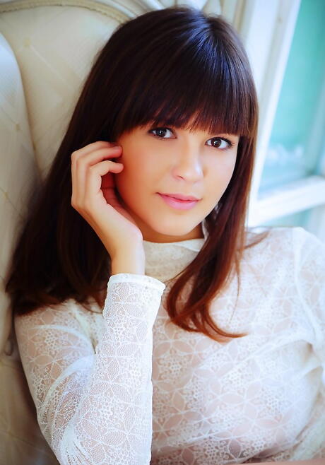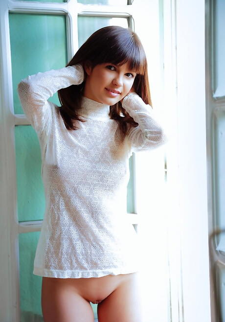 Gracile brunette teen Zelda B revealing big titties and bald pussy