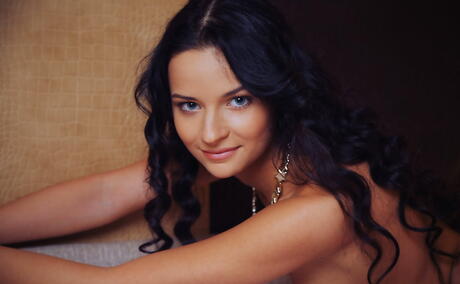 Gracile brunette young Ardelia A baring tiny tits and spreading her legs
