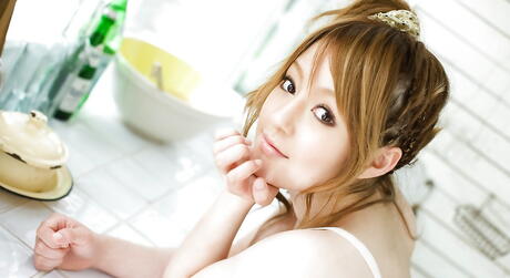 Gracile japanese babe Ria Sakurai exposes tiny tits and hot butt