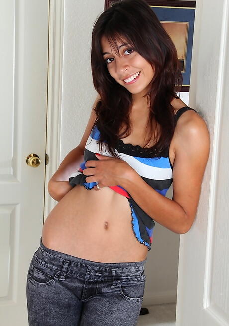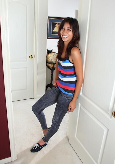 Gracile latina teen Rocky in undies exhibiting small tits and spreading her legs
