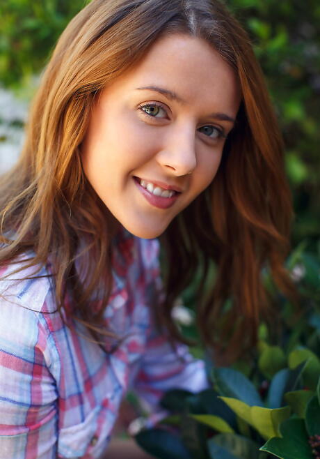 Gracile red-haired teen Sybil A in nice skirt exhibiting big boobies and spreading her legs outside