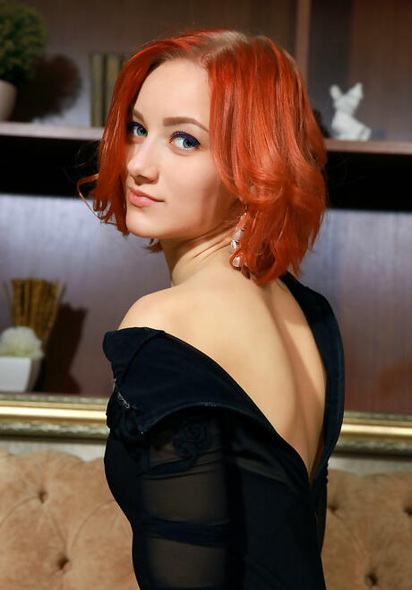 Gracile redhead youthful Anastasia Azul showing tiny tits and butt