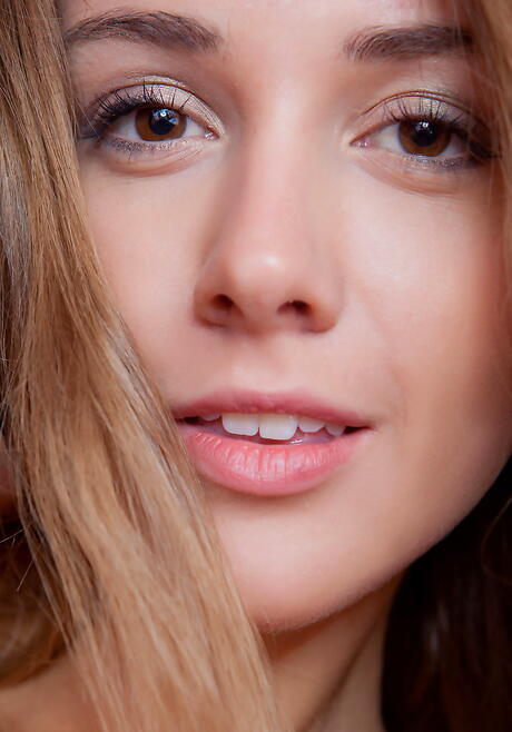 Gracile teen Lina Diamond unveils small tits and spreads her legs