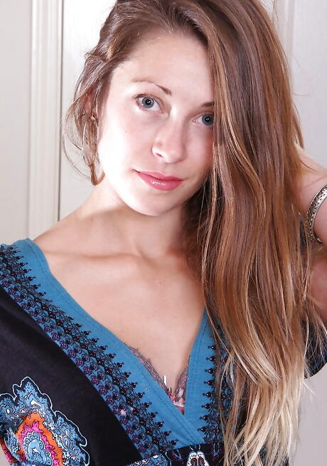 Gracile youthful Candice Fergison in lingerie shows tiny tits and shaved pussy