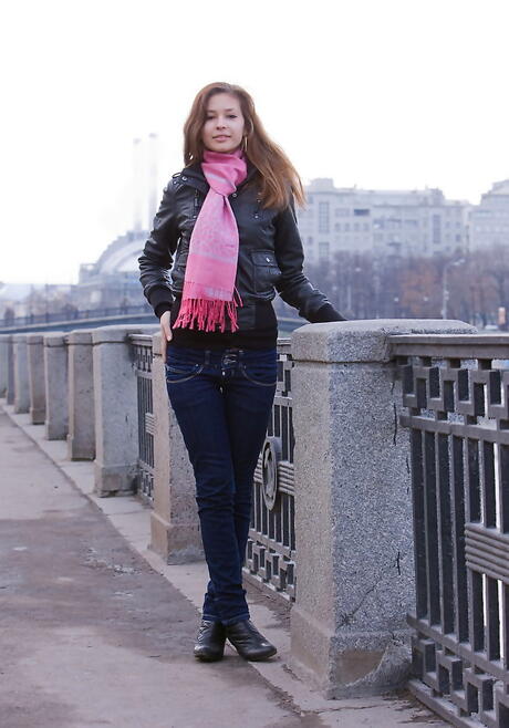 Gracile youthful Irina J showing small tits and spreading her legs outdoor