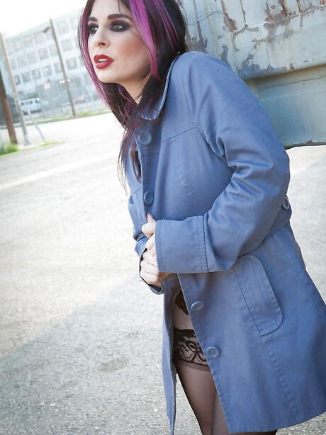 Hot american hottie Joanna Angel bares her butt in hot stockings and masturbates outdoor
