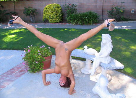 Hot american older Cheyenne Hunter in undies exhibits big knockers and pussy outside