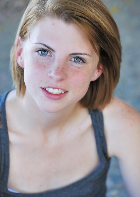 Hot american redhead teen Aubrey Belle in sexy jeans exposes tiny tits and nice pussy outdoor