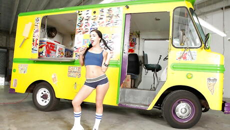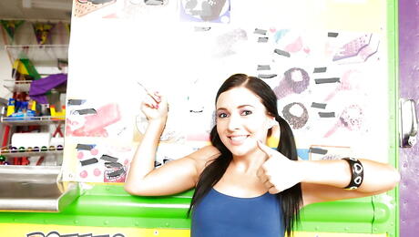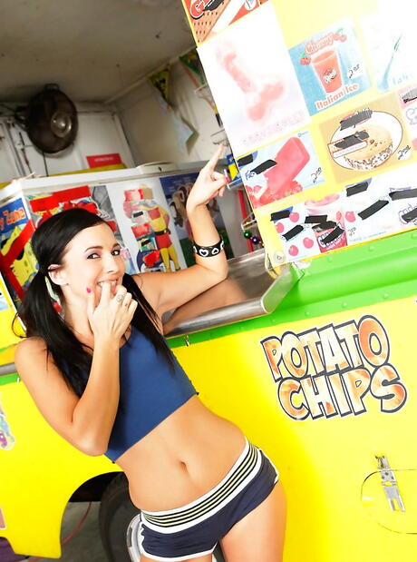 Hot american teen Ashli Orion in shorts baring tiny tits and sexy ass