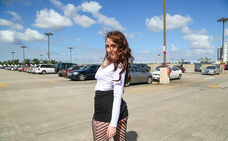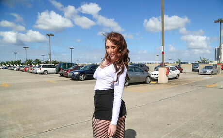 Hot american teen Lilith Addams rammed by big cock after good cock suck outside