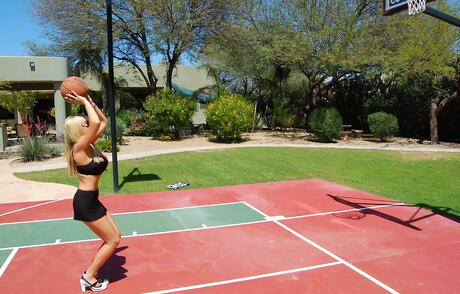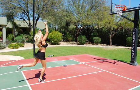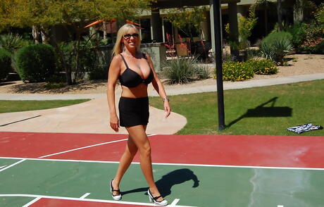 Hot american wife Sandra Otterson showing big knockers and butt outside