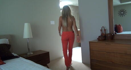 Hot american wife Sandra Otterson sucking on cock and takes a cum blast in her mouth