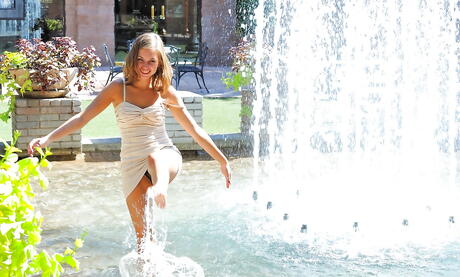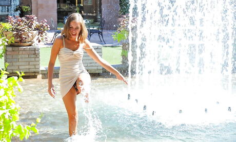 Hot american young Riley Reid shows small tits and vagina outdoor