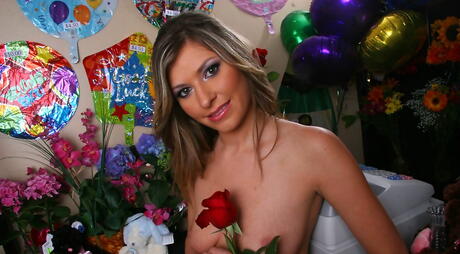 Hot american young Victoria Lawson in shorts baring big tits and sexy ass