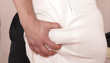 Hot asian brunette Cristine Akira Lee in skirt sucking deep rod and enjoys a cumshot on face