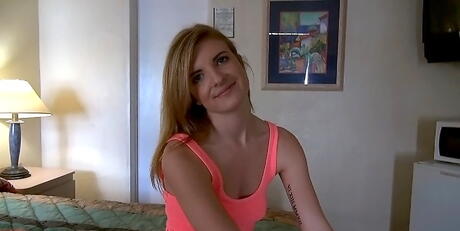 Hot blond babe Sally James reveals tiny tits and masturbates