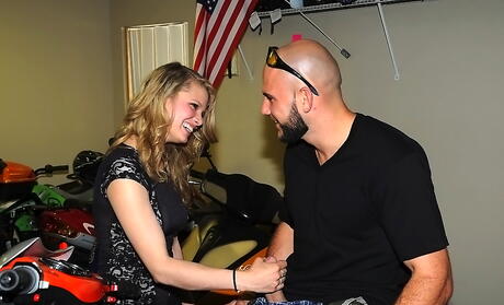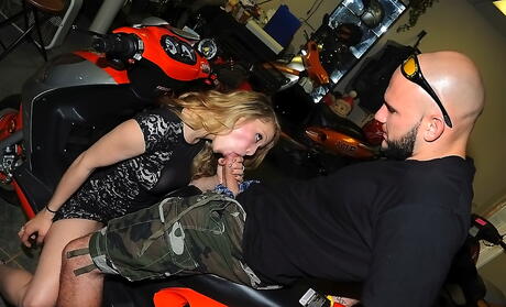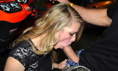 Hot blonde Stella Ferrari in skirt blows on big rod
