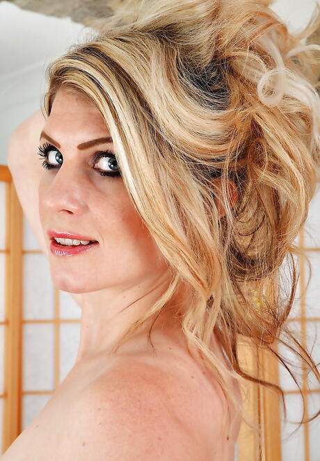 Hot british blond older Ashleigh Mckenzie in lingerie revealing her butt and spreading her legs