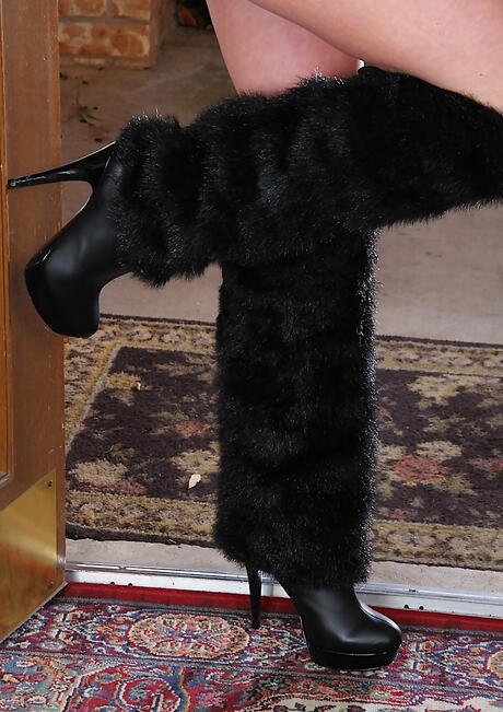Hot british older Crystal Forrester in nice skirt showing big hooters and bald pussy