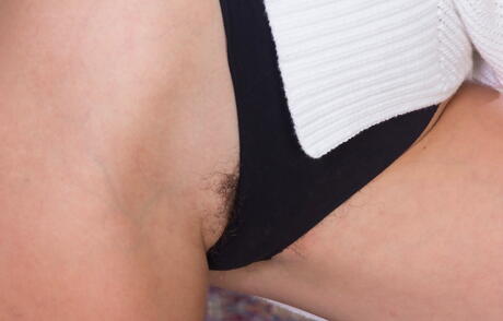 Hot brunette cutie Heaven Starr in sexy panties shows small tits and hairy beaver