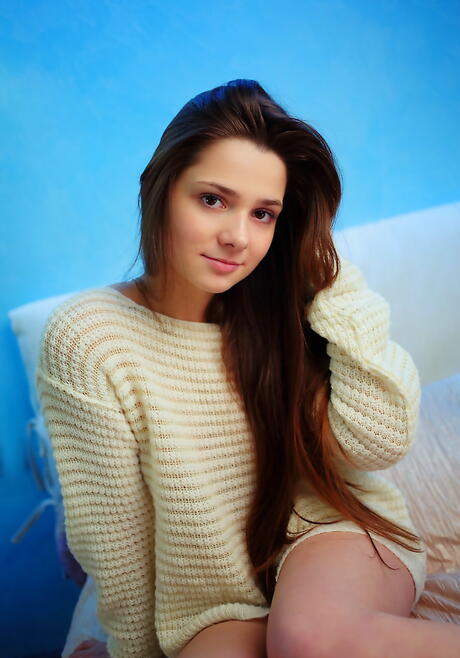 Hot brunette teen Kamilah A exposing tiny tits and shaved pussy