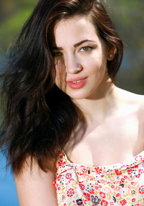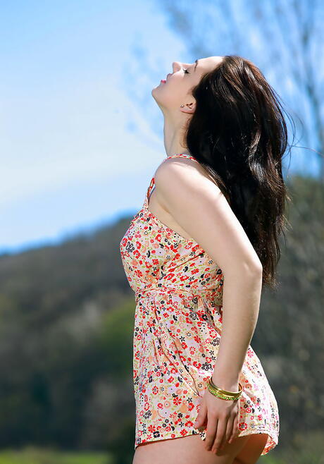 Hot brunette young Sivilla in skirt showing her ass outdoor