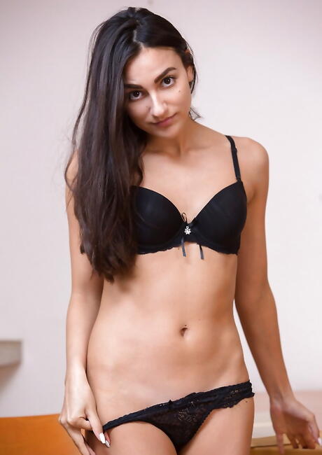 Hot dark hair teen Cira Nerri in hot undies baring small tits and spreading her legs in office