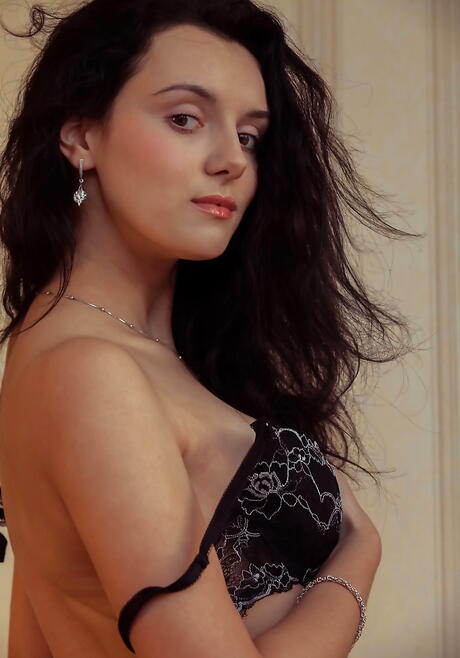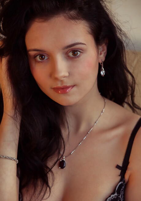 Hot dark-haired teen Anatali in hot lingerie loves foot fetish