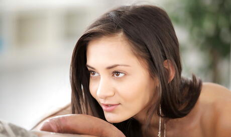 Hot dark-haired teen Sima A well sucking big cock and takes a cum shot