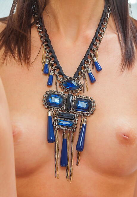 Hot dark-haired youthful Xola showing tiny tits and shaved pussy