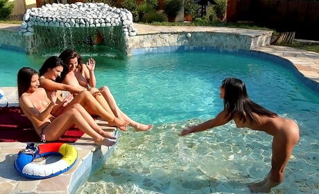 Hot girls Anita Berlusconi and Ria Rodrigez having lesbian sex at pool
