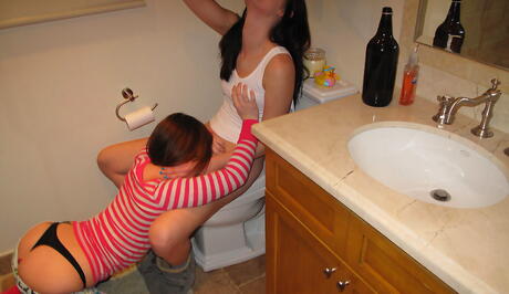 Hot girls Bella and Tiffanie in hot panties licking hot pussies in the hot lesbian sex in the bathroom