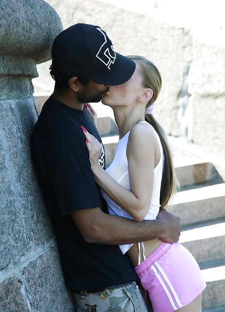 Hot russian teen Olga Barz suck black dick and fuck in the ass outdoor