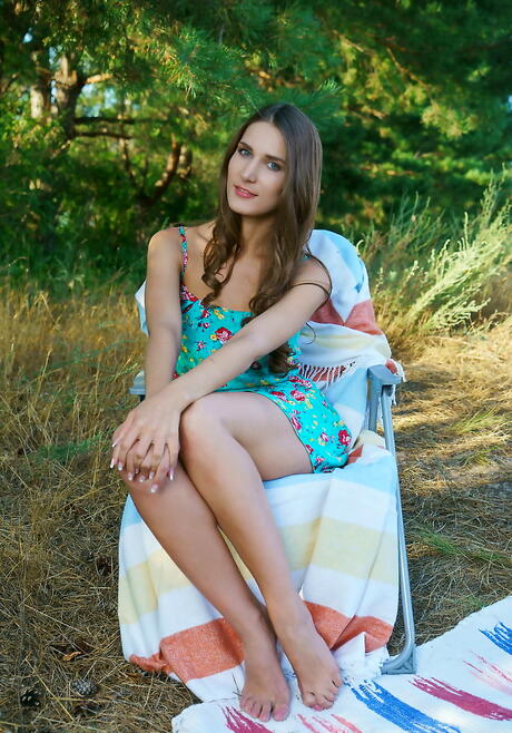 Hot teen Elina in skirt exposes her ass and hairy pussy outdoor