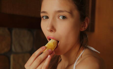 Hot ukrainian teen Mila Azul bares big tits and spreads her legs