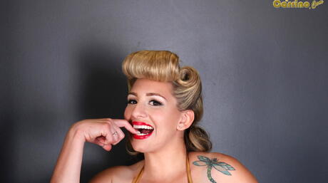 Inviting american blond hottie September Carrino in sexy posing on camera