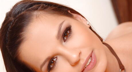 Inviting american dark hair Eve Angel in skirt likes foot fetish