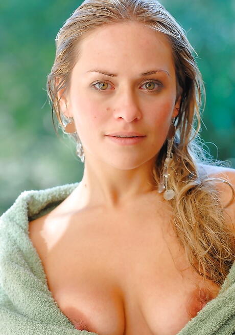 Inviting blond babe Marina in sexy skirt exhibits big boobs and sexy ass at pool