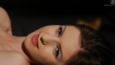 Inviting brittish milf Stella Cox exhibits big hooters and bald pussy