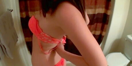 Inviting brunette hottie Jasmine Delatori in hot lingerie bares big titties and butt