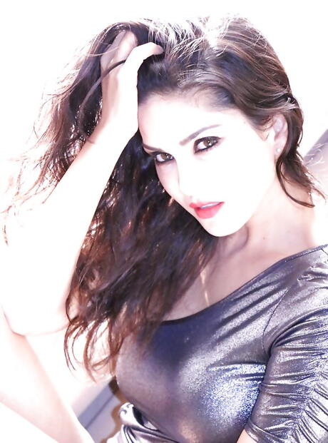 Inviting indian dark hair milf Sunny Leone in sexy skirt exposing big hooters and hot butt