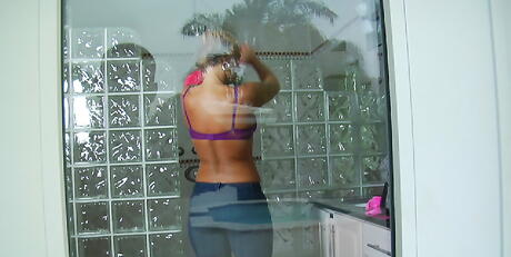 Inviting milf Melanie Monroe showing big boobs and hot butt in shower