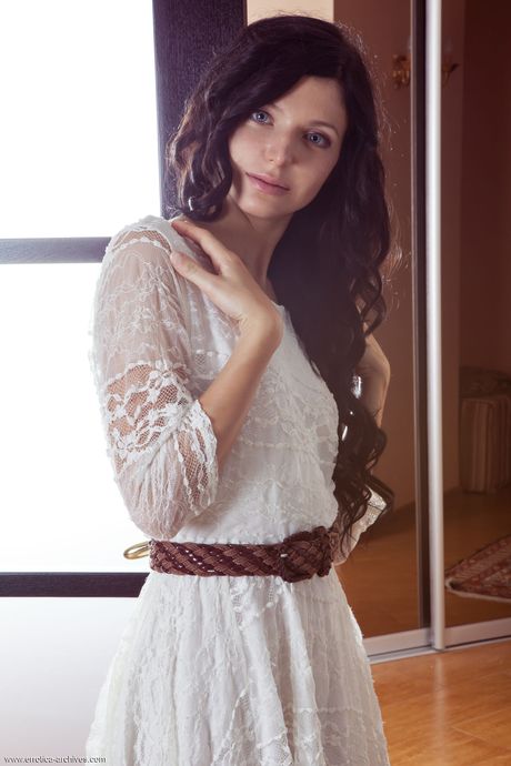 Adorable teen Arian bares her body in front of a mirror during solo action