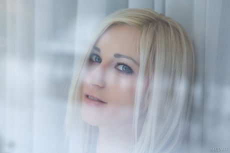 Blonde teen Janelle B shows off her big tits and trimmed pussy in the nude