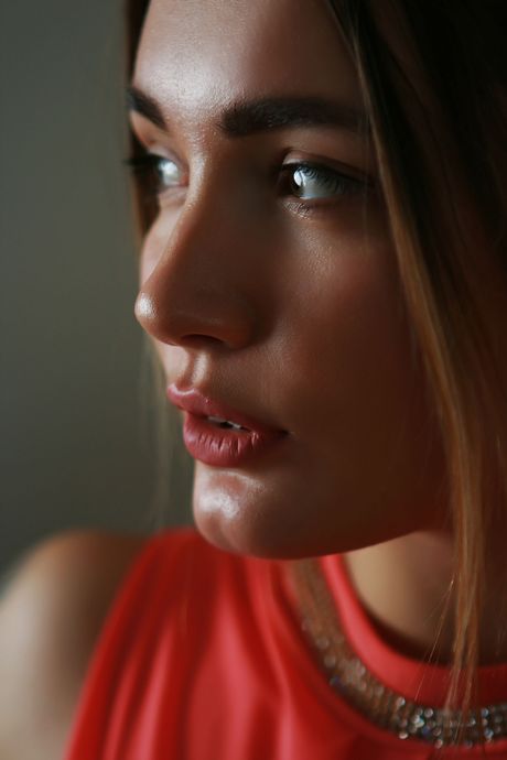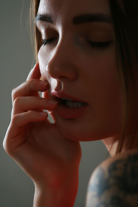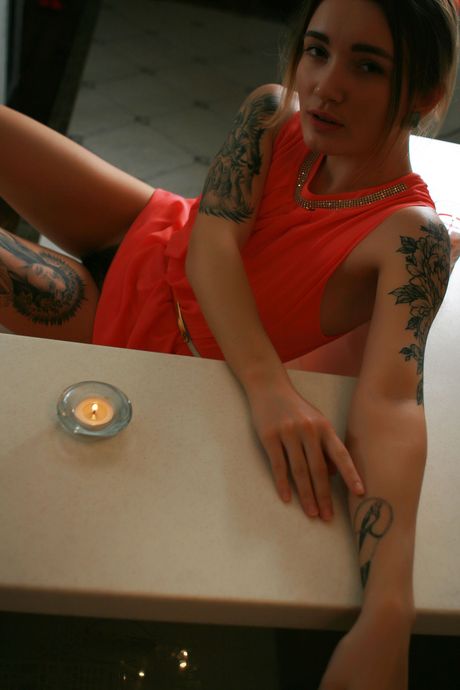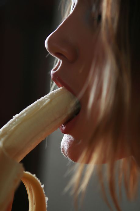 Delightful teen Roksya gets naked in the kitchen while eating fruit
