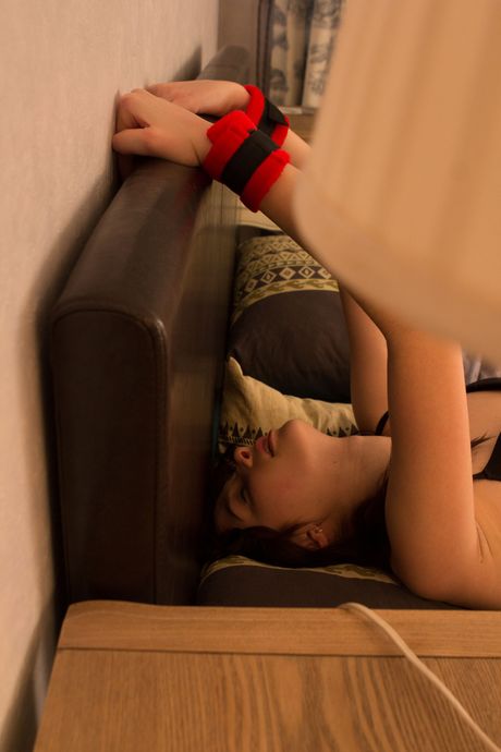Young girl Ruta removes her yoga pants before a finger fuck on her bed