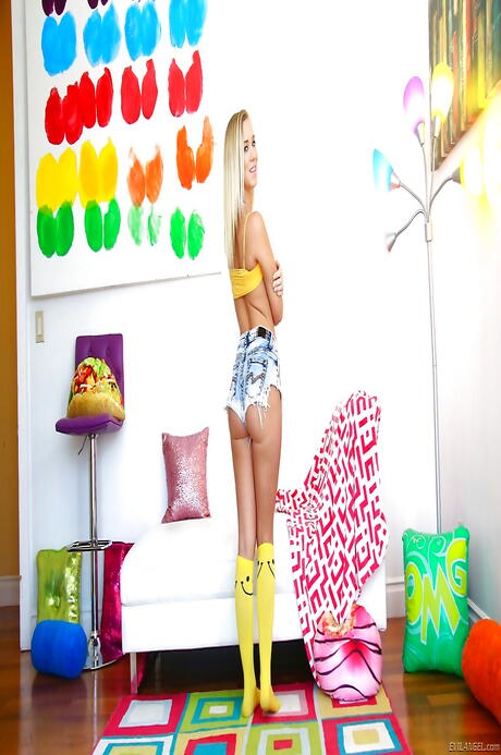 Lovely american milf Bailey Brooke in fancy shorts shows big boobies and hairy pussy