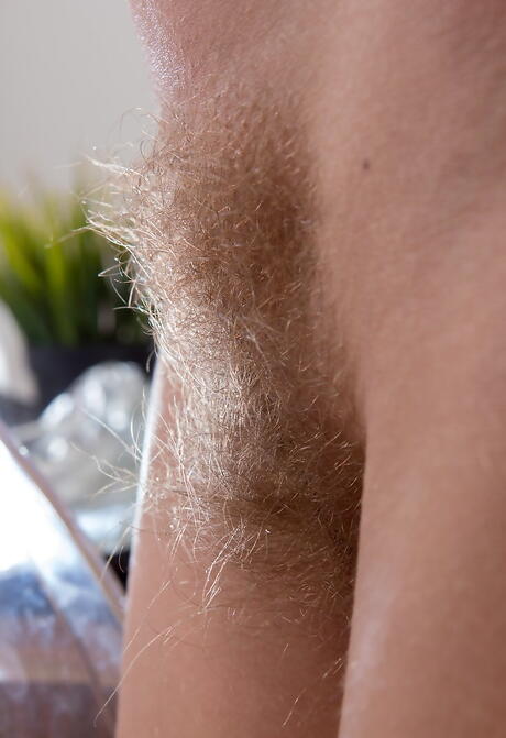 Lovely blonde babe Ayda in fancy skirt revealing big tits and hairy pussy