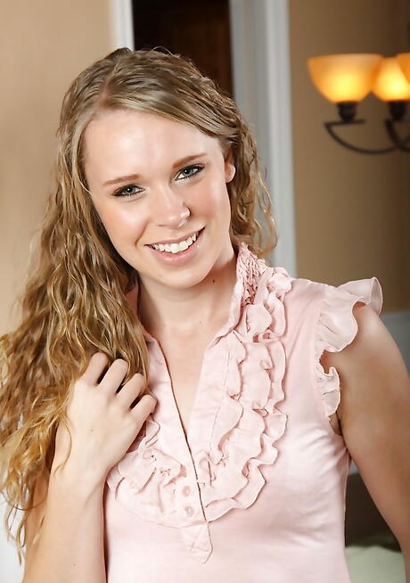 Luscious american blond young Anna Stevens in fancy skirt revealing tiny tits and pussy