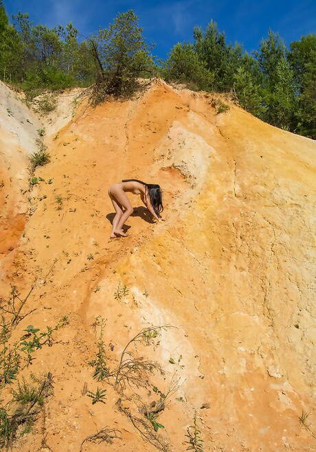 Luscious american brunette teen Celeste reveals her ass and spreads her legs outside